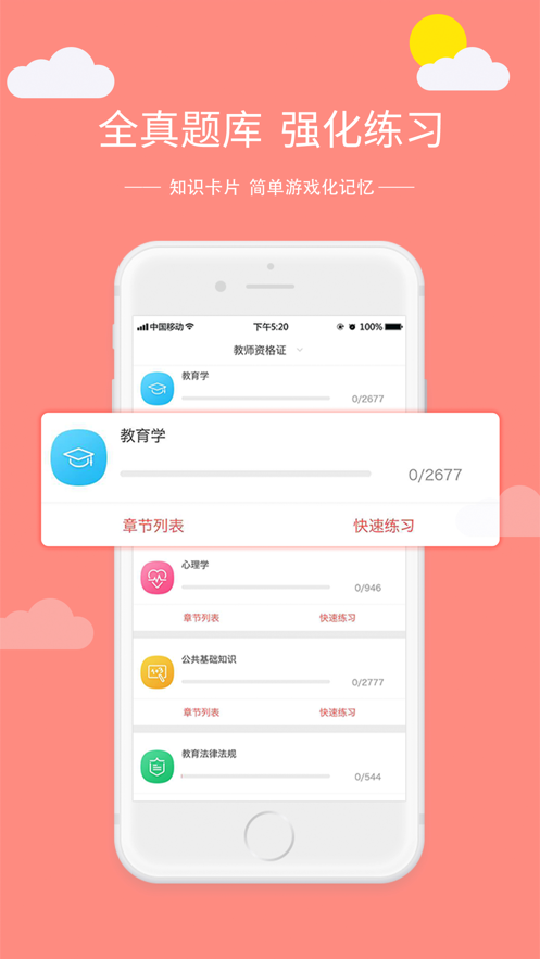 教师资格面试,教师资格笔试,重点精选,100%覆盖考点考题,答案解析由专业教考老师精心打造;高质量,覆盖教资大纲所有章节考点。每个章节配备智能测评系统,学员可实时了解掌握程度,系统会根据答题情况自动推荐强化练习内容。