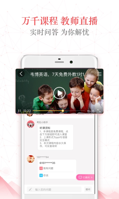 情感、亲子、生活、健康、商业等多个类目,各行各业专家、老师直播课程,实时在线回答问题,知识从未离你如此近。平台特别设置了职场进阶、IT互联网、金融理财等热门领域专区,每个分类下都有数百门精品课程供用户选择。同时,考拉微课还定期邀请知名企业家、行业大咖进行专题分享,为用户提供最前沿的行业洞见和实践经验。