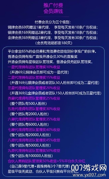 关于推广机制:平台采用多级推广模式,用户可以通过邀请好友获得额外收益。不同等级对应不同的收益比例,具体规则可查看平台详细说明。