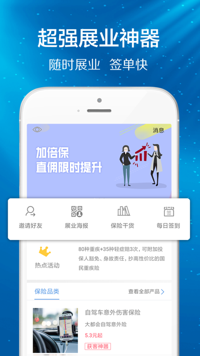 康乃星保险App是一款专为保险从业者打造的智能展业平台,集客户管理、产品推广、专业学习于一体。通过这款应用,保险代理人可以高效开展业务,实现快速签单与收益提升。平台提供丰富的热门保险产品资源,搭配智能化的客户管理系统,让展业过程更加轻松便捷。无论是经验丰富的保险专家,还是刚入行的新人,都能在这里找到实用的展业工具和学习资源。高额推广奖励、邀请红包等激励机制,以及一键生成精美海报等功能,全方位助力保险从业者提升业绩。