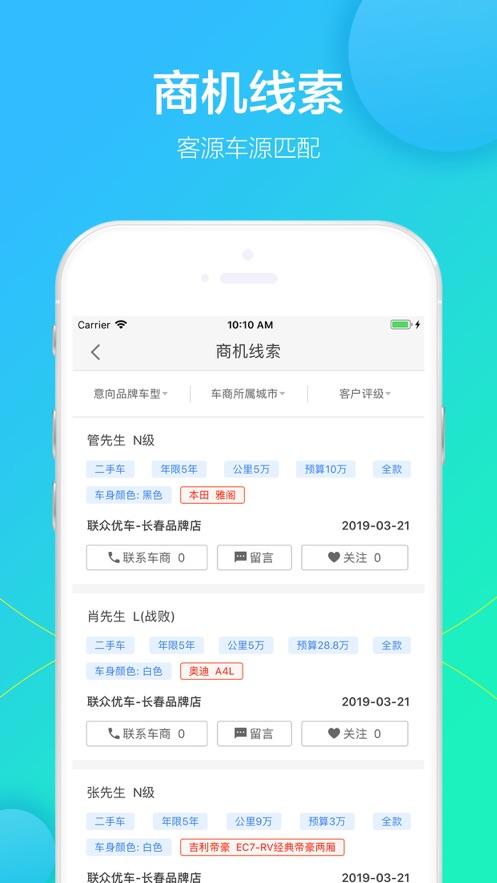 联众有车APP是一款专为汽车经销商打造的智能化管理工具,整合了行业核心业务场景的全流程解决方案。通过移动端数字化平台,车商可高效完成客户资源管理、车辆价值评估、库存动态监控等核心业务,实现经营效率的全面提升。系统采用模块化设计,支持多终端数据同步,并融入金融、交易等增值服务,助力车商在激烈市场竞争中建立数字化优势。现平台已服务全国超5000家车商,日均处理车辆评估请求超万次。