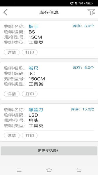 在这里,用户能够清晰看到详细的物料名称、单据日期和仓库名称等信息;系统采用卡片式信息展示,关键数据突出显示,支持自定义显示字段。