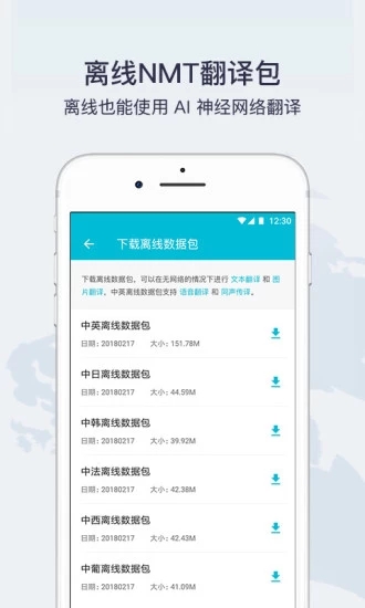 翻译——业内首创的离线翻译引擎,内置多国语言核心词库,在没有网络的情况下也能保持90%以上的翻译准确率。新增的离线语音包下载功能,让语音翻译也能离线使用。