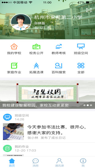 班级空间:支持照片分享、话题讨论、作业提交的互动社区,配备家长教师分级权限管理