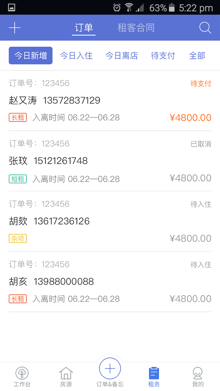 「实时房态管理」采用直观的图形化界面展示客房状态,空房、入住、清洁中等各种状态一目了然,帮助您快速做出决策。