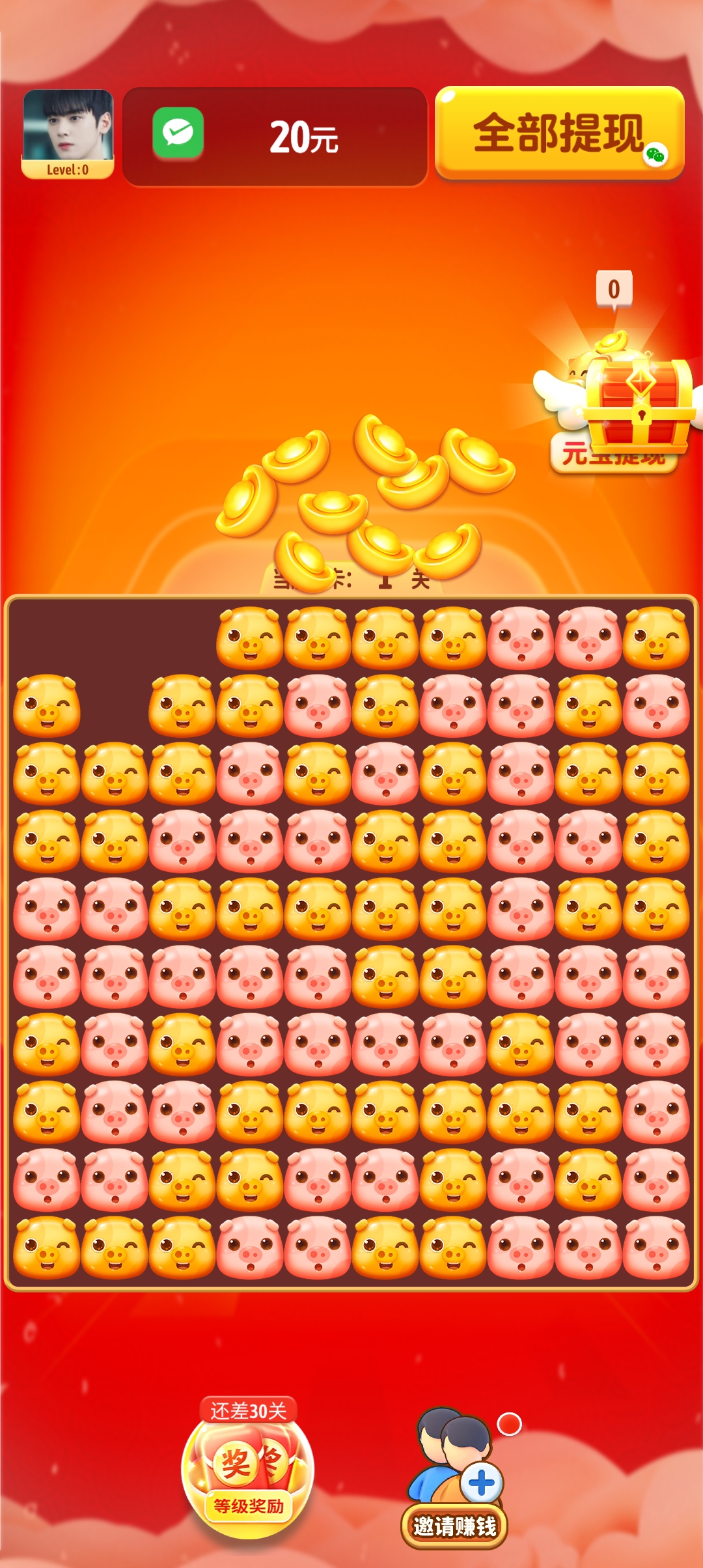 以独有的红包为玩法的游戏,每次都是可以轻松进行消除的;多关卡的消除游戏,通过消除可以自由的体验到各种关卡。游戏消除的角色是非常的,每次都是可以点击消除哦。游戏采用Q版萌系画风,小猪角色造型可爱,消除特效绚丽多彩,给玩家带来视觉与游戏体验的双重享受。