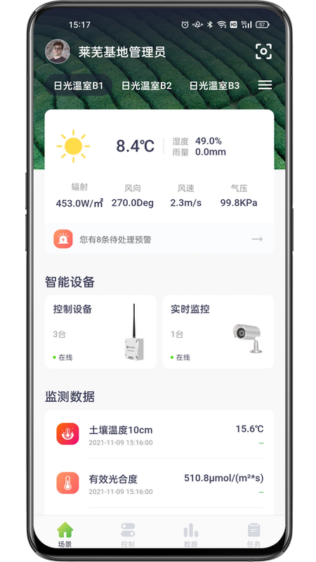 科百智汇app为用户提供了全方位的农田管理解决方案。用户可以通过移动设备或PC端登录专属客户端,实时查看各个监测点的环境数据、作物生长状况等关键信息。系统支持远程控制灌溉阀门等设备,并能通过高清摄像头实时查看田间情况。这些功能不仅实现了作物生长过程的动态监测,还能帮助用户进行远程精准管理,有效降低劳动强度,提升工作效率,最终实现农业增产增收的目标。