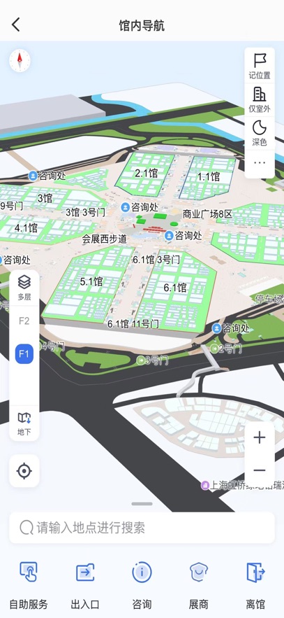 一是实现展会及周边信息展示,精准提供餐饮住行、展馆展位分布、展会活动信息、场馆设施、资讯公告等展会数据。系统会基于用户位置实时推送周边服务信息,包括最近的餐饮点、休息区、洗手间等。