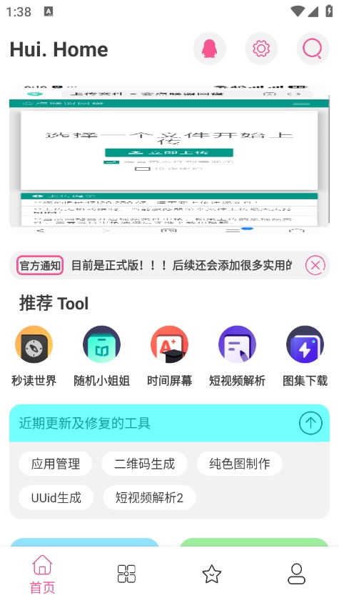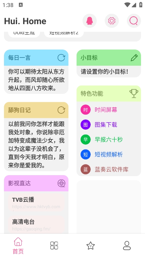 首页页面为大家推荐了很多的工具资源,包括每日一言、小目标以及在线等。这些推荐内容会根据用户使用习惯智能调整,提供更符合个人需求的工具建议。