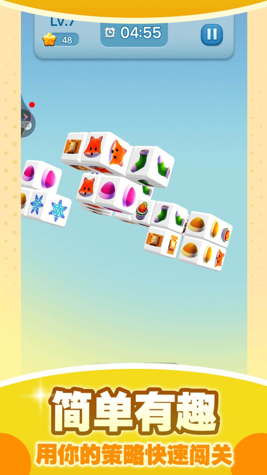 这款游戏最突出的特色在于其独特的空间思维能力训练。玩家不仅需要快速识别相同图案,还要在三维空间中判断方块的相对位置和可视角度。游戏贴心地设计了多种难度梯度,既有适合休闲放松的简单关卡,也有需要深思熟虑的复杂谜题。游戏节奏可以根据玩家喜好自由调节,既可以快速完成消除获得高分,也可以慢慢思考享受解谜过程。特别值得一提的是,游戏具有极佳的减压效果,流畅的操作反馈和绚丽的消除特效能有效缓解压力,为玩家带来轻松愉悦的游戏体验。