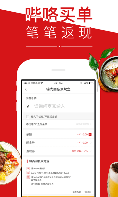 不浪费:每笔消费都能获得随机返现,让日常消费变成一种理财方式;