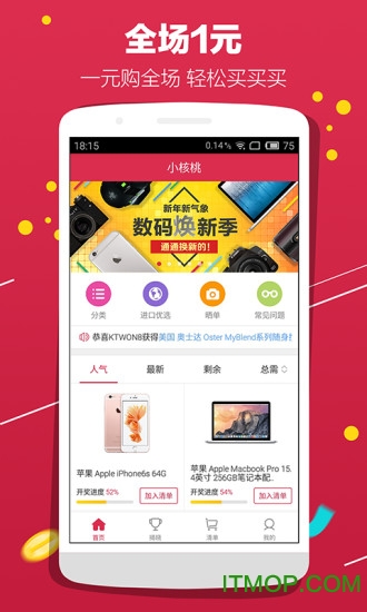 核桃是深圳曲奇科技有限公司倾力打造的一款创新性一元购物手机夺宝应用。在这个充满惊喜的平台上,只需投入一元钱,你就有机会将价值不菲的豪华礼品带回家!无论是最新款的苹果手机、高性能笔记本电脑,还是专业级数码相机,各类优质商品应有尽有。每天都有无数幸运儿在这里实现梦想,你还在等什么?立即前往IT猫扑下载体验吧!