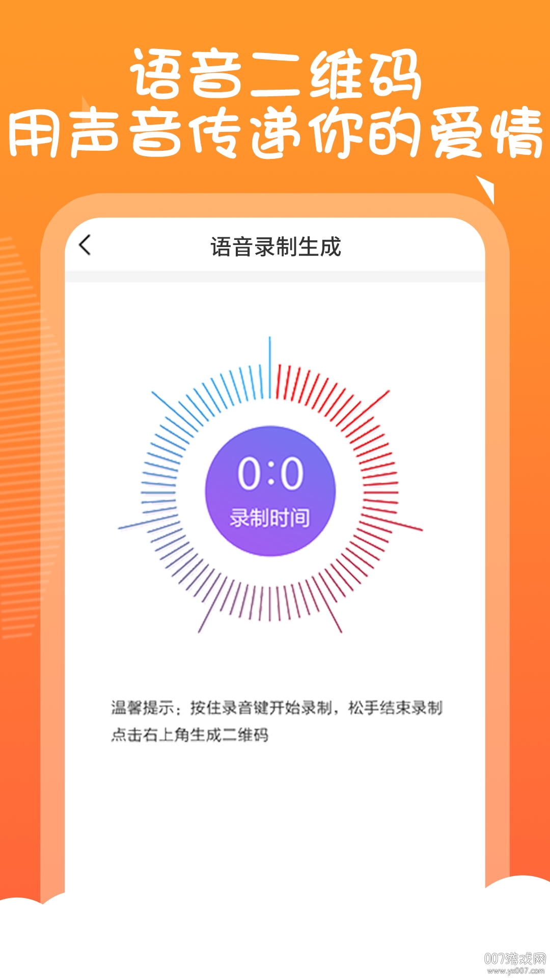 界面简洁,一目了然,操作便捷,新手也能快速上手使用。做出来很漂亮,表示已表白成功,简直高能,是表达心意的创意工具。图片文字都可以生成二维码,用来制作惊喜棒棒哒,让日常交流更有趣。图片文字均可转化,文本、通讯录、邮件、电话、名片、网址,满足你的需求,功能全面实用。