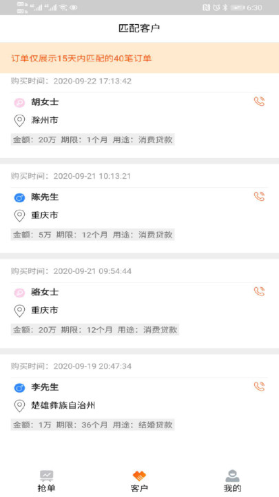 海量优质订单:平台每日更新1000+真实优质订单,所有客户贷款意愿强烈,彻底解决信贷展业获客难题。