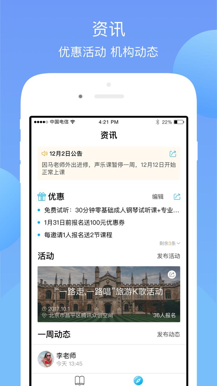 铃铃机构服务App不仅是一款功能强大的管理工具,更是一个连接学员与机构的优质平台。我们通过创新的社交功能搭建了活跃的学员交流圈子,促进师生互动和学员间的经验分享。平台致力于为学员提供优质的培训教育体验,同时也帮助培训机构精准获取目标学员,建立长期稳定的招生渠道。我们的使命是让教育培训更智能、更高效、更人性化。