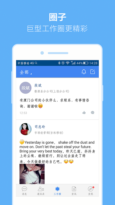 工作圈:打造企业专属社交平台,支持图文动态分享、话题讨论和专家咨询,促进知识沉淀;