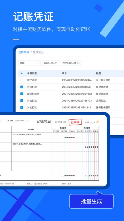 银企直联功能已对接1400多家银行,支持统一支付,大大提升资金管理效率;台账管理功能实时展现企业各类台账信息,帮助企业提升财务管理能力;单据管理功能覆盖申请单、借款单、付款单、收款单、合同单等多种业务单据;对公业务功能支持各类对公支付场景,包括采购申请、合同管理、预付款处理、收款管理等;预算控制功能构建了多维度费控模型,实现从事前申请、事中管控到事后分析的全程费用控制。