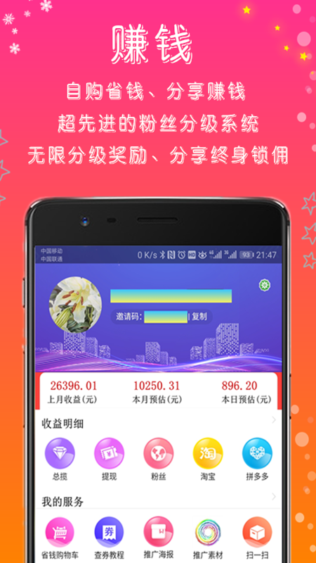 随便逛app的独特之处在于它将省钱购物与社交分享完美结合。除了提供常规的购物优惠外,我们还开发了创新的"超级会员"体系,让忠实用户获得更多回报。软件内置的营销工具让分享优惠变得简单快捷,一键生成精美的宣传海报,助您轻松扩大社交圈影响力。更重要的是,我们注重用户体验,所有优惠信息都经过严格审核,确保真实可靠。一个APP就能解决您购物、生活、娱乐等多个方面的省钱需求,真正实现"一省到底"的消费理念。