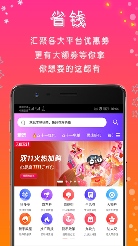 随便逛app免费版下载是一款专为精打细算的消费者打造的购物省钱神器。这款软件汇聚了淘宝、天猫、京东、拼多多等主流电商平台的丰富优惠资源,让您轻松享受购物折扣的乐趣。无论您是日常购物达人还是偶尔网购的用户,随便逛都能为您提供最实惠的购物方案,真正做到"自购省钱,分享赚钱"。