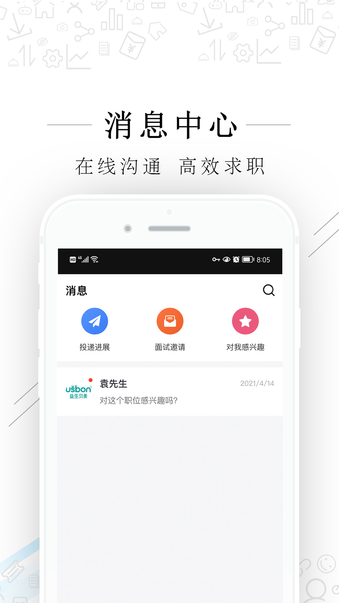 消息中心支持求职者与企业HR直接在线沟通,实时交流职位详情、面试安排等信息。智能提醒功能确保不错过任何重要消息,让求职过程更加顺畅高效。