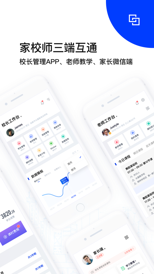 管理培训机构不再靠笔、纸和笨重的电脑,经营情况一目了然;所有数据实时同步云端,支持多终端查看分析。管理员+校长端、老师端与家长无缝链接,让教务管理、教学执行与不再有障碍;三方信息实时互通,确保教育过程透明化。轻松上手全校管理、课消、课表、签到、作业、点评等核心教务教学功能;操作简单直观,新用户也能快速掌握。AI人脸识别技术加持,考勤签到更加智能、高效;同时支持多种考勤方式,满足不同场景需求。