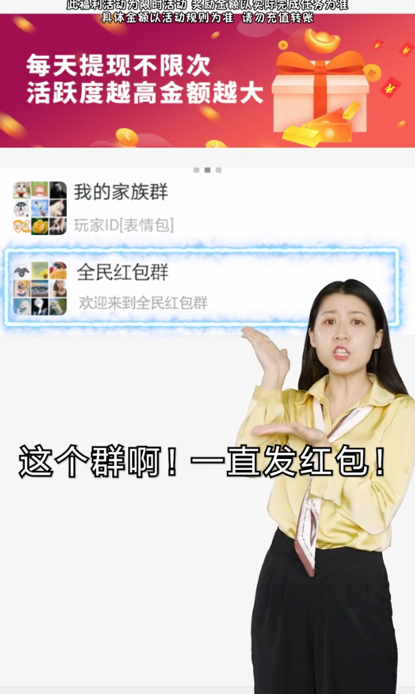 全民红包群当然能提现!游戏采用"红包即现金"的理念,让玩家的每一分收获都真实可靠。正如游戏宣传语所说:"没有什么是一个红包解决不了的,如果有,就给两个~"游戏的人气持续高涨,每天都有大量新玩家加入。玩家只需完成简单的签到任务,就能领取红包奖励,而且提现秒到账,让玩家玩得更放心。