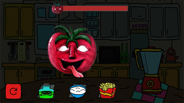 打开游戏后点击PLAY按钮即可开始这场奇妙的喂养之旅。游戏采用直观的触控操作,玩家需要通过滑动屏幕将食物精准投喂给西红柿先生。值得注意的是,投喂错误食物会引发可怕的连锁反应,这时你需要及时找到解毒剂来挽救局面。游戏还设置了特殊的紧急处理机制,当情况失控时可以使用特定道具重置场景。