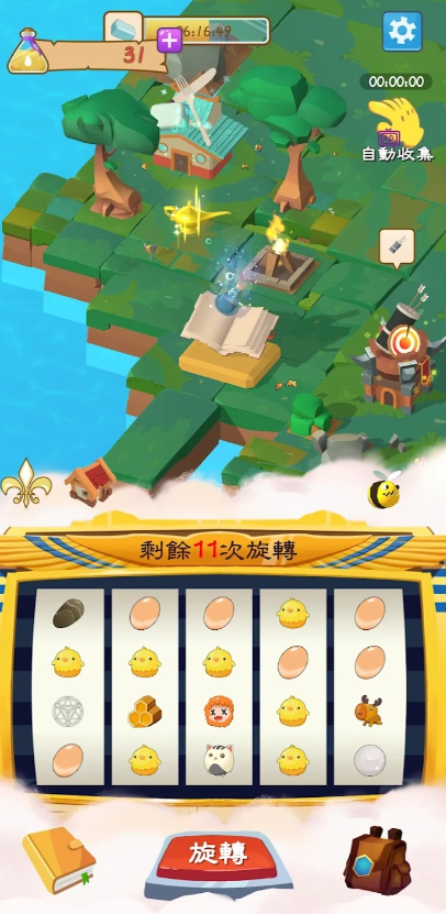 游戏开始时,玩家会获得免费的老虎机抽奖机会,通过旋转可获得包括增益符文、魔法原石、稀有装备等珍贵道具。这些物品会自动存入背包系统,玩家可以随时查看详细属性说明。使用魔法符文可以暂时提升角色能力,原石则能用于升级装备或兑换特殊道具。随着探索深入,玩家需要合理分配资源,在岛屿各处设立临时营地,逐步揭开神灯背后的古老秘密。