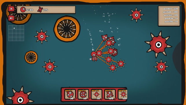 游戏采用了简单易上手的操作方式,通过虚拟摇杆即可控制细胞的移动方向。玩家需要不断收集散布在地图上的能量点,同时也要寻找机会吞噬比自己弱小的其他细胞。随着体积的增长,玩家可以解锁细胞分裂功能,通过合理分配染色体和基因来创造更多的子细胞,从而组建属于自己的细胞军团。游戏中最具特色的玩法在于与其他玩家的实时对抗,你需要运用策略性的走位和精准的操作来击败对手,同时也要防范来自四面八方的威胁。