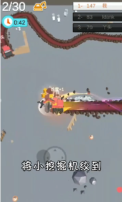 沿着某个方向滑动即可进行转弯。精准的操控是获胜的关键,你需要灵活调整挖掘机的行进方向来围堵对手。