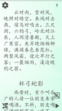 笠翁对韵朗读APP是一款深受广大用户喜爱的经典文化学习软件,它为用户提供了丰富多样的国学经典内容,包括百家姓、千字文、唐诗宋词、三十六计等传统文学瑰宝。通过这款APP,用户不仅能系统学习从单字对、双字对、三字对到五字对、七字对乃至十一字对的对韵技巧,还能在潜移默化中提升语言表达能力,为今后的语文学习和文化素养打下坚实基础。