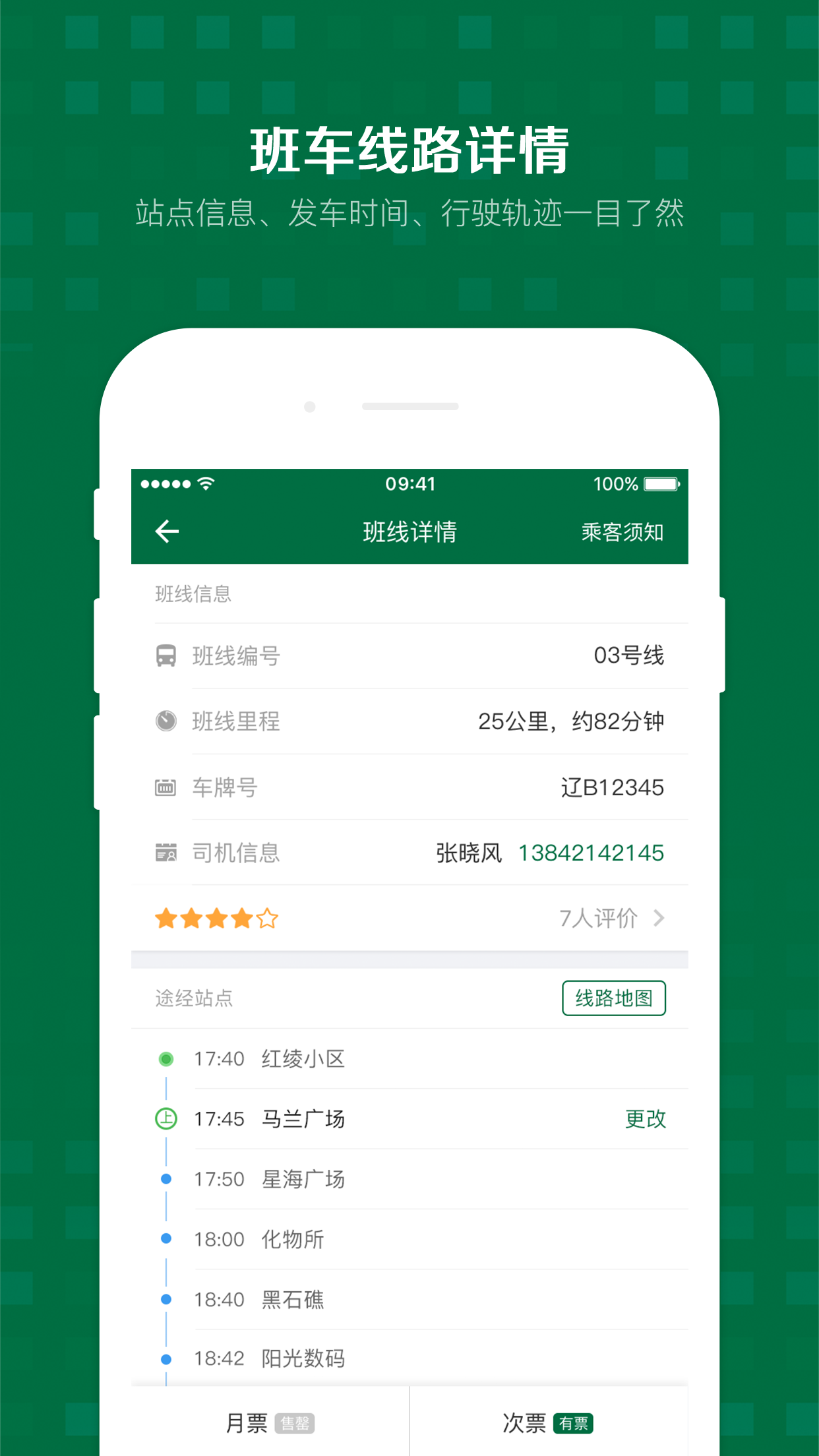 通过地图,清晰选择站点购票,支持多种支付方式,包括微信、支付宝等主流支付平台;班车的线路详情站点信息发车时间等清晰呈现,还能查看各站点周边的地标建筑和换乘信息;可随时随地掌握班车的实时运行动态,误差不超过30秒,让您告别盲目等待;使用专属的乘车码,快捷乘车,支持离线生成二维码,即使网络不佳也能顺利乘车。