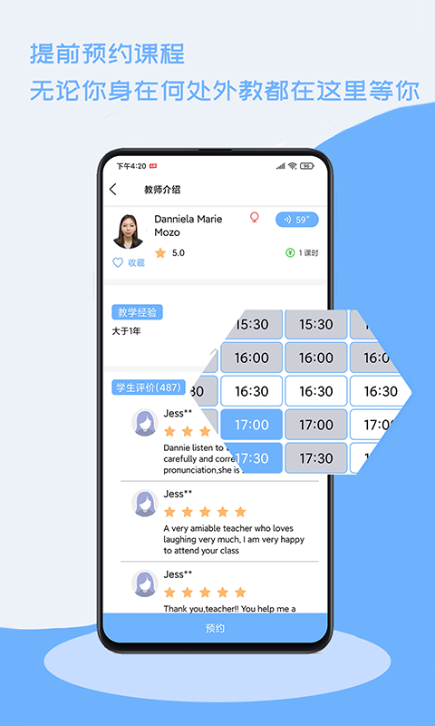 提前预约课程,无论你在何处外教都在这里等你。系统支持提前7天预约,学员可以根据自己的行程灵活安排学习时间。即使临时有事,也可以方便地取消或改期,确保学习计划不会被打乱。