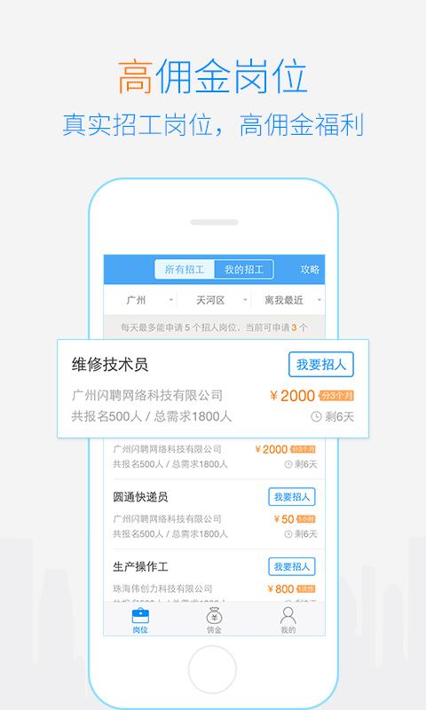 岗位资源丰富多样:平台汇聚了包括普工、技工、生产工、汽修技师、货运司机、客服专员等在内的数十种蓝领岗位,全面满足各类企业的用工需求。高额佣金回报:平台提供远高于行业平均水平的佣金标准,结算周期短至7天,让招聘从业者能够快速获得丰厚回报。操作体验极简:采用直观的界面设计和清晰的操作指引,即使是初次使用的用户也能快速上手。流量共享机制:创新性地引入经纪人流量共享功能,通过整合各方带来的求职者资源,显著提升整体招聘效果。