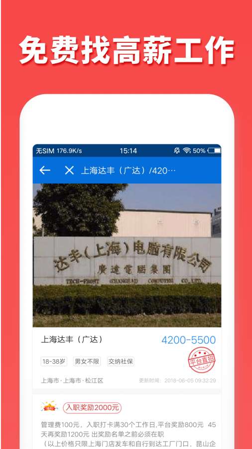 工厂入职奖励金信息:平台汇集了各大工厂的入职奖励政策,帮助求职者选择待遇最优的工作机会。