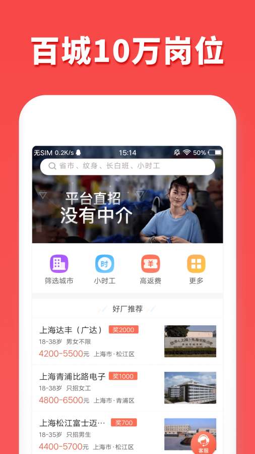 多个城市在招工厂信息展示:覆盖全国多个城市的工厂招聘信息,满足不同地区求职者的需求。