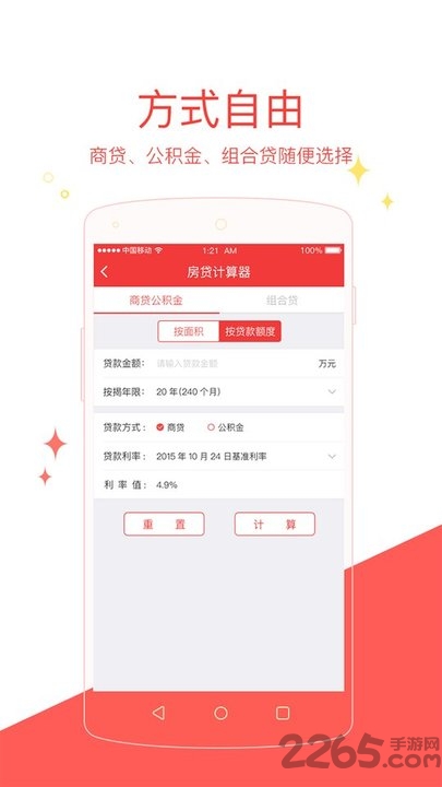贷款形式全面支持:软件支持等额本金和等额本息两种主流还款方式,涵盖商业贷款、公积金贷款以及组合贷款等多种贷款形式,满足不同用户的多样化需求。