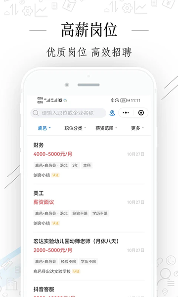 高效招聘服务:为企业提供一站式人才招聘解决方案,同时为求职者推送最新优质岗位信息。