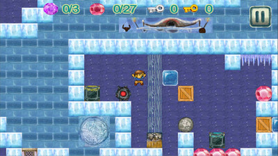 本作延续了经典益智游戏《钻石狂潮》的核心玩法并加以创新,玩家将在宏伟的古代寺庙中展开冒险。游戏界面设计简洁直观,底部状态栏依次显示指南针方位、生命值状态、血槽容量以及红钻紫钻收集进度。玩家需要通过推动石块开辟道路,同时收集散落在各处的钻石。游戏采用双重目标设定:基础通关只需收集必要数量的钻石,而追求完美的玩家可以挑战全钻石收集以获得三星评价。每个关卡都经过精心设计,石块摆放位置与机关触发机制环环相扣,需要玩家反复尝试才能找到最优解。