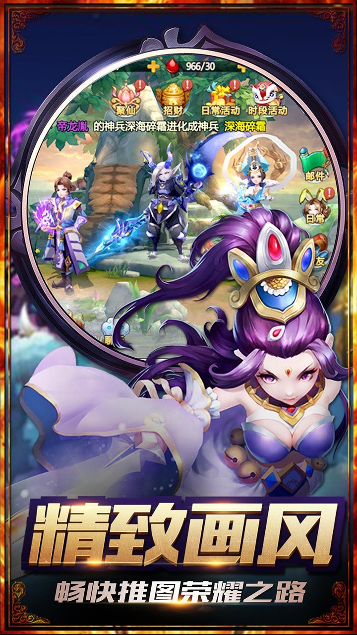 游戏精心设计了鬼、妖、仙、佛四大种族体系,每个种族都有独特的技能体系和成长路线。玩家可以收集三界中最强的数十位神将,通过碎片合成、升阶培养等方式打造专属阵容。每位神将都拥有华丽的必杀技和独特的背景故事,让玩家在组建最强战队的同时,也能深入了解三界传奇。更有跨服竞技场等你来战,展现你的最强阵容!