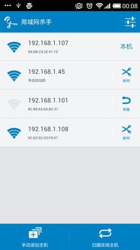 在扫描主机列表时,由于手机性能不同,速度可能会有所差异,请耐心等待。建议在网络环境相对空闲时进行操作,这样可以获得更准确的扫描结果。