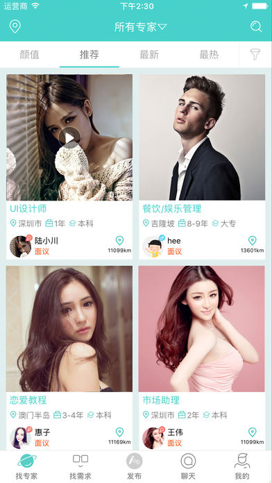 发布人才需求后,找专家的页面自动匹配最合适的专家,系统会根据行业、技能等多维度进行精准推荐;