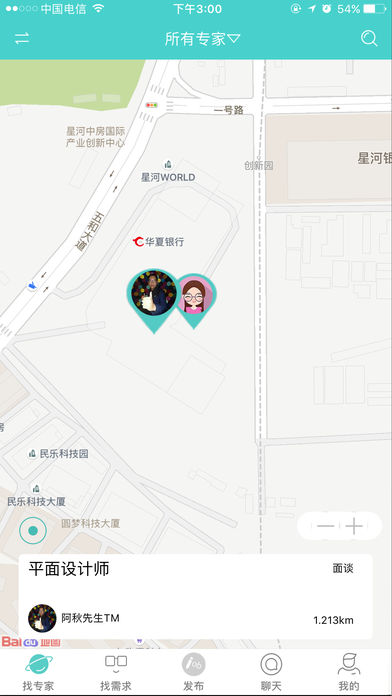 地图找专家,找最近的人最快速的来提供服务,满足紧急用工需求;