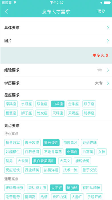 视频介绍,真实表现颜值(无美颜),让招聘方直观了解求职者的形象气质;