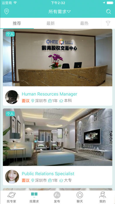 添加自己的专长后,找需求的页面自动智能匹配最合适的人才需求,让求职者轻松找到心仪岗位;