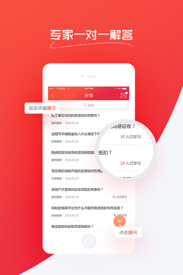 专家问答:提供专业的在线问答服务,用户可随时提交财税相关问题,由行业专家进行一对一解答,确保每个问题都能得到高质量的专业回复。