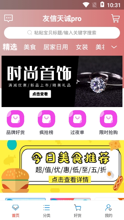 友信天诚是一款集购物、社交与赚钱于一体的创新电商平台,为用户打造极致的消费体验。平台汇聚全球优质商品,涵盖服饰、数码、家居等全品类,每日更新超10万款精选好物。独创的社交分享机制让用户购物更省钱,分享还能赚取丰厚佣金。智能推荐系统精准匹配用户喜好,新人专享188元大礼包,全场商品支持7天无理由退换,让您享受安全便捷的购物乐趣。