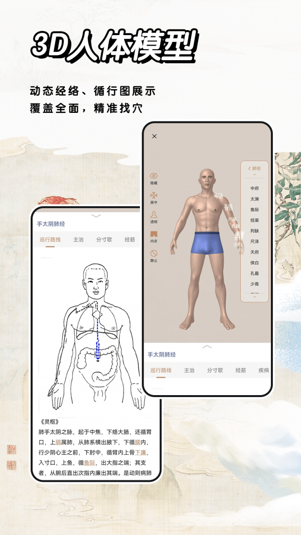 中医经络穴位app是一款专业权威的中医学习与健康养生应用,专注于传承和普及中医经络穴位知识。作为中医经穴百科大全,该软件全面覆盖人体十二正经、奇经八脉及所有重要穴位,通过精细的3D人体模型直观展示经络走向和穴位分布,让用户能够清晰查看每个穴位的精准定位、主治病症、针刺分寸歌诀以及经筋关联等核心内容,是中医爱好者、从业者及养生人士不可或缺的学习工具。