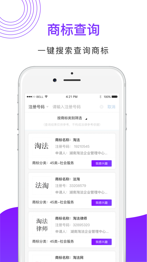 淘法商标app特色