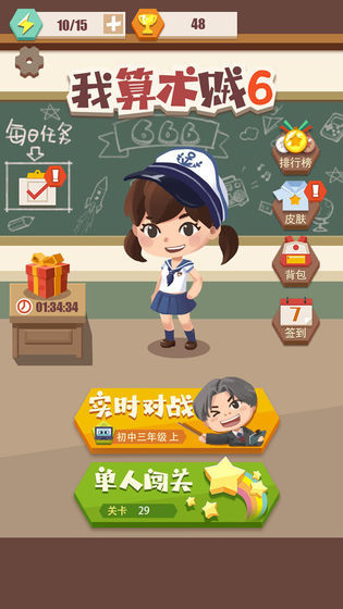 我算术贼6手机版是一款充满趣味性的休闲闯关类数学游戏,专为热爱数学挑战的玩家设计。游戏中包含了海量精心设计的算术题目,涵盖加减乘除等多种运算类型,确保每一关都能带给玩家新鲜感。题目难度适中且不会重复出现,玩家需要快速思考并准确作答,在限定时间内击败对手。系统会根据答题速度和正确率实时计分,只有反应最快且答案正确的玩家才能赢得分数,紧张刺激的竞技模式让数学对决充满乐趣。